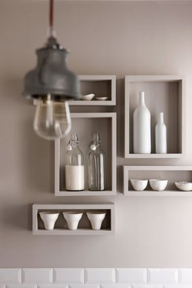Le vieux rose en déco, c’est une couleur tendance et pleine de charme. Ici, le haut du mur ainsi que des étagères de rangements en rectangles ont été peints de cette couleur pastel ce qui permet d’obtenir une ambiance harmonieuse, délicate et poudrée très chic !