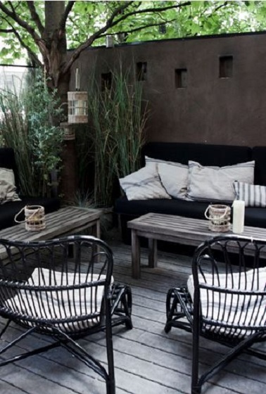 Le rotin revient en force dans la déco et s’invite sur la terrasse pour un coin détente tendance en bois.