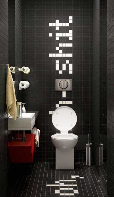 Décoration graphique pour WC en carrelage noir