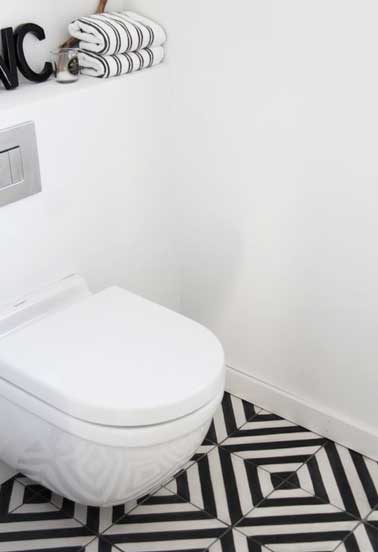 Une déco WC en carreaux de ciment noir et blanc