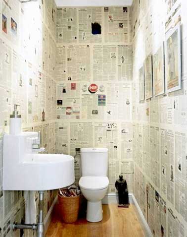 Une déco WC en papier peint journal pour intello