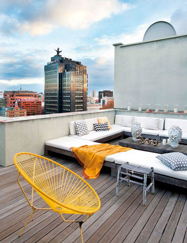 Un fauteuil Acapulco roi de la déco d’une terrasse sur le toit