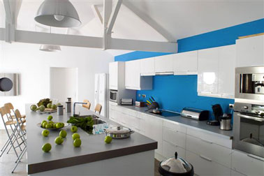 Les couleurs de peinture cuisine disent non à l’austérié et c’est tant mieux ! Donc à bas les clichés et vive la liberté de choisir un jaune citron ou un bleu pacifique , de préférer des couleurs chaudes comme on les aime dans le Sud, d’opter pour une peinture grise  si telle est notre envie, pour un violet ou un vert intense, toutes les couleurs de peinture sont permises pourvu qu’elles s’harmonisent et nous permettent de construire la cuisine de nos rêves !