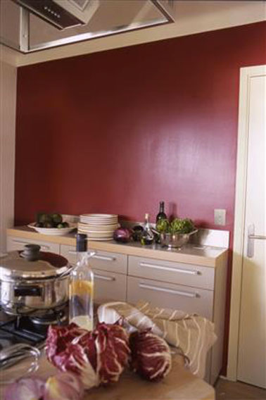 Couleur de peinture rouge intense pour une cuisine  généreuse