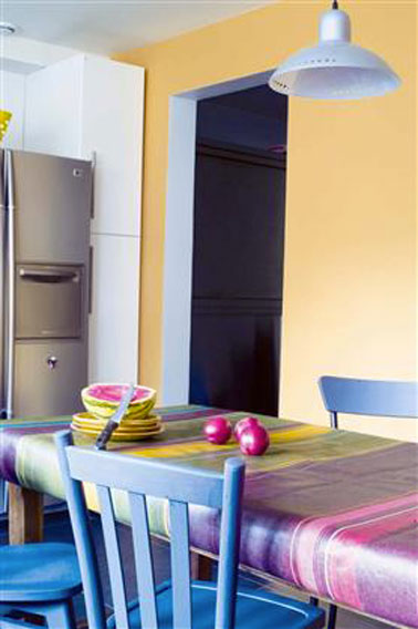 Peinture cuisine couleur jaune et bleu pour un esprit coté Sud