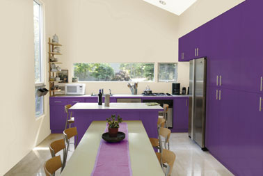 Cuisine peinture couleur lin autour du violet