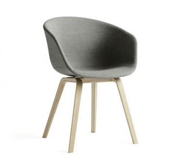 Chaise « About a chair » design Hee Welling. Piétement en chêne naturel avec coque en polypropylène revêtu de tissu. existe en version sans tissu et plusieurs coloris.  L 50 P 59 H 80 cm. Marque : Hay. Prix : 104 €