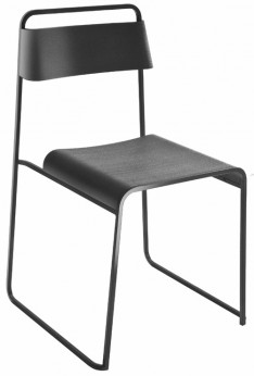 Chaise « Linéa » design Gabrielle Pezzini. Structure en tube d’acier à section carrée chromé mat. L 50 P 48 H 80 cm. Marque La palma. Prix 330 €