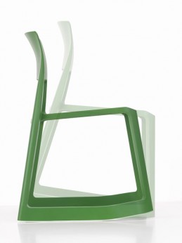 Chaise « Top Ton » design Barber & Osgerby. Empilable, piétement à bascule,assise dynamique.existe en plusieurs coloris. L 51 P 55.5 H 78.6 cm. Marque : Vitra. Prix : 220 €