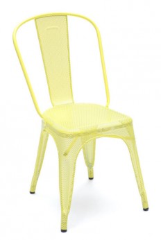 Chaise « A » design Xavier Pauchard revue par Chantal Andriot. L’indémodable chaise en acier inoxydable perforé laqué. L 51 P 46 H 85 cm. Marque : Tolix. Prix : 219 €