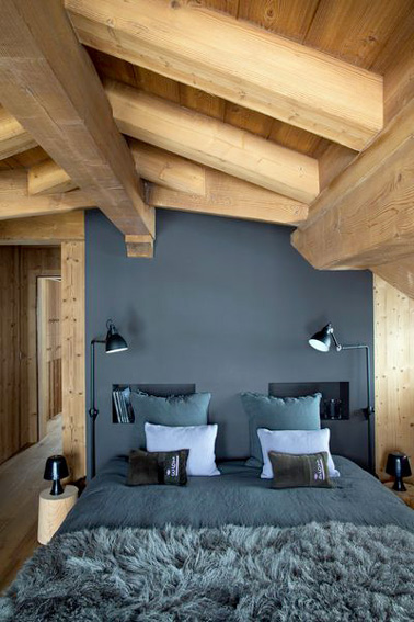 Une chambre sous combles à l’architecture structurée par des poutres