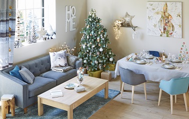 Sapin d'ornement pour décoration d'intérieur de Noël, boules de couleur intégrées dans l'arbre, 19,99 euros.