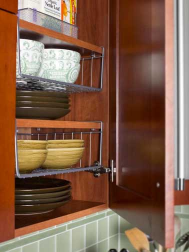 Diviser l’espace de rangement en deux permet de rendre votre vaisselle plus facilement accessible, tout en vous aidant à gagner de la place dans les placards de la cuisine.