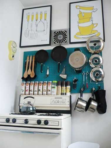 Posez un panneau à accessoires cuisine en guise de crédence