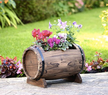 Mettez en valeur vos fleurs en les plaçant dans une jardinière pleine de charme ! Une idée déco facile à reproduire avec un tonneau pour un extérieur sublimé