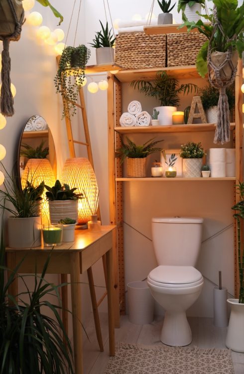 - Utilisez des paniers en fibres naturelles pour ranger le papier toilette ou les produits d’entretien. Ils deviennent alors des éléments décoratifs à part entière.