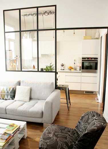 Une cuisine rétro avec une cloison verrière déco loft