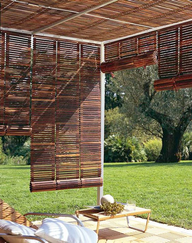 Une pergola réalisée avec des stores en bois s’invite sur la terrasse