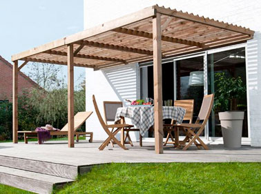 Pour bien profiter de la terrasse, créez un espace ombragé avec une pergola et son toit en tuile pour un espace agréable dès l'arrivée des beaux jours et du soleil