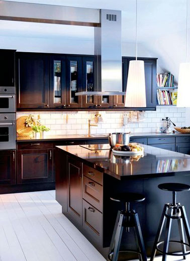 Une cuisine noire qui mélange les styles avec du carrelage métro en crédence
