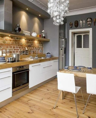 Une touche authentique dans la cuisine avec une crédence mur en brique