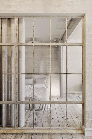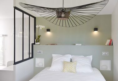 Dans la chambre la verrière intérieure fait la déco