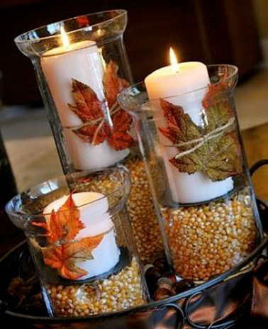 Faites scintiller votre maison avec des bougies dans des photophores de Noël 100% nature. Remplissez le fond de vases ou de grands pots transparents de maïs séché, disposez des grosses bougies blanches à l’intérieur et décorez d’une large feuille de chêne ramassée dans la nature à fixer avec de la ficelle autour de la bougie. Une déco de Noël naturelle qui ne manquera pas de susciter l’intérêt des plus gourmands de vos invités pour les fêtes !