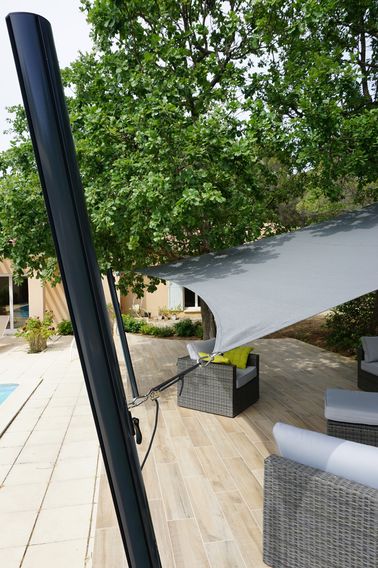 Le mat pour voile d’ombrage réglable : vous réglez la tension ainsi que l’inclinaison de la toile en fonction de l’orientation du soleil. Pratique, il peut être retiré l’hiver et réinstallé en quelques minutes dès les premiers rayons de soleil (disponible en 4 coloris pour se fondre dans votre jardin : Aluminium, Anthracite, Noir ou Blanc : nouveauté de l’année !)