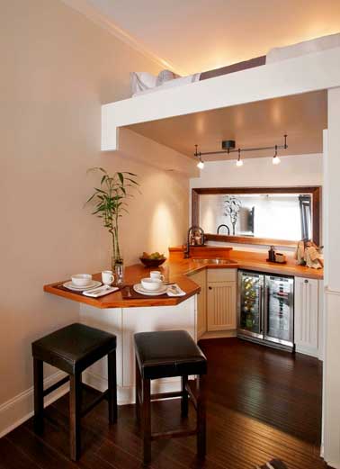 Un aménagement de petite cuisine optimisé c’est la garantie d’un gain de place maximum. Et pour se faire, en déco cuisine les astuces pratiques et les rangements efficaces pour décorer une petite cuisine ne manquent pas : plan de travail et crédence assortis  apportent de la profondeur à la petite cuisine, meubles de rangements sur mesure optimisent les moindres recoins disponibles, (hauteur sous plafond, angles…) couleurs de peinture claires et crédences miroirs donnent une impression d’espace…
