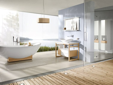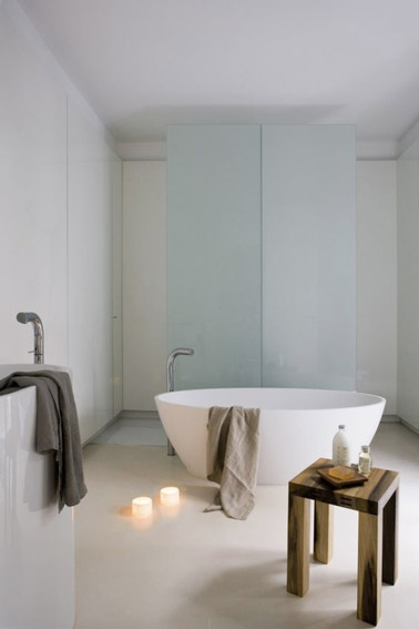 La baignoire îlot fait la déco dans une salle de bain esprit scandinave