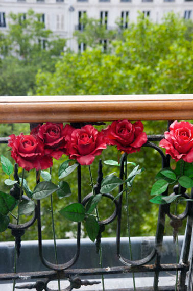 Concevoir l’aménagement d’un balcon fleuri lorsque l’on n’a pas la main verte, c’est possible ! Il suffit d’aller quérir quelques roses en tissu que l’on s’empresse de fixer sur la rambarde à l’aide de fil de fer et l’affaire est dans la sac !  Euh.. Non, sur le balcon ! Pas d’arrosage, pas de rempotage annuel !