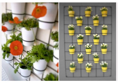 Classique mais toujours efficace sur un balcon, une grille en métal galvanisé pour accrocher une série de plantes en pot. Pour un bel effet déco, optez pour une seule couleur pour les pots ou cache-pots.