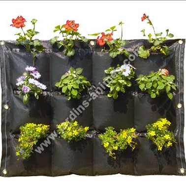 Idee amenagement jardin sur balcon avec un mur végétal en toile composé de 12 compartiments pour culture fleurs et plantes aromatiquesUn espace fleurs et plantes à aménager en deux temps trois mouvements sur le balcon avec le mur végétal extérieur 12 poches. Disponible chez  Jardins Animés