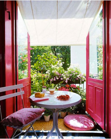 A petit balcon, grande solution et ce n’est pas parce que le balcon est minuscule qu’il n’est pas possible de profiter du soleil. L’astuce c’est de penser l’aménagement du balcon comme une prolongation du salon. On associe indoor à  outdoor, même couleur, même style,  et si il n’est vraiment pas possible de placer la table de jardin sur le balcon, pas de problème on la met à l’intérieur du salon !