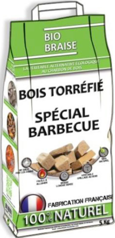 Biobraise, est un produit français 100% naturel, bio, efficace et beaucoup moins polluant que le charbon de bois.  le bois torréfié BioBraise provient de forêts locales françaises éco-gérées et ne contient que 19 % de carbone alors que le charbon de bois contient 85 % de carbone ou de catégorie A. Le bois torréfié est dépourvu adjuvant chimique et a le gros avantage de ne pas salir les mains. Il s’allume facilement mais lentement, et l’étendue du feu offre des braises de longue durée, plus saines pour l’environnement.