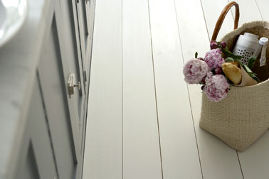 Pour booster la décoration d’une pièce, repeindre le sol est aussi une bonne idée ! Un coup de peinture sur le parquet un peu fatigué, et c’est la pièce qui se fait lumineuse. Côté entretien vous êtes gagnant, même si c’est le parquet de la cuisine qui  est repeint, les dernières peintures pour sol offrent une excellente résistance. Exemple de prix : Le pot de 2.5litres 105€ chez Little Greene.