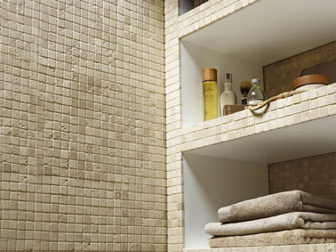 La pierre naturelle mise à l’honneur dans la salle de bain avec cette mosaïque spéciale salle de bain couleur ivoire. Une mosaïque à poser sur sol et murs. Pierre naturelle Couleur : Ivoire 12.95 € la plaque de 30.5×30.5cm chez Leroy Merlin.