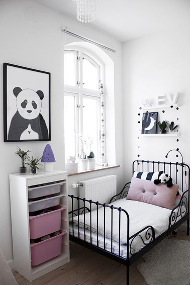 Du noir pour la déco d’une chambre d’une petite fille aux murs blancs