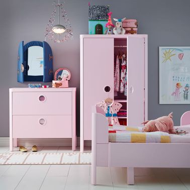 Sélectionnez un meuble de la chambre ou adoptez le total look en les prenant tous ! Votre petite princesse va être aux anges ! © Conforama