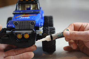 Un point de colle ultra forte sur la voiture en plastique cassée et votre enfant retrouvera son jouet fétiche ! Photo : Cyanolit