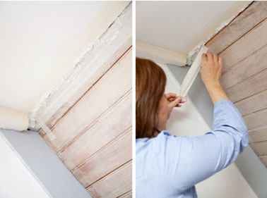 Après le séchage complet de la mousse expansive, retirer le ruban de masquage qui a servi à protéger le mur ou le plafond