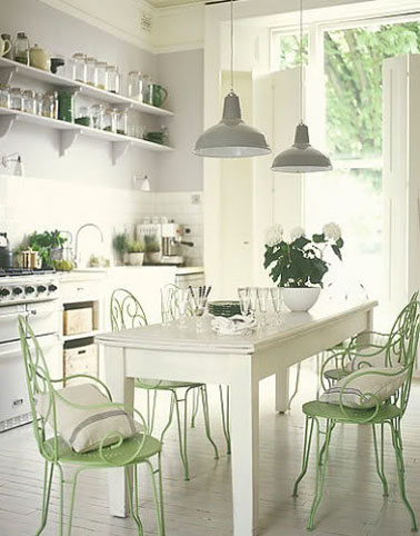 Dans toutes les pièces dans lesquelles vous voulez que se dégage une atmosphère  douce, sereine et naturelle, le vert d’eau  est à coup sûr un superbe allié. Il en est de même pour les nuances qui lui sont proches dans le nuancier. L’ambiance déco qu’il permet de créer met à mal les idées reçues sur l’utilisation du vert en décoration d’intérieur. Ainsi, dans un salon, un cuisine, une entrée, il se crée autour du vert une atmosphère aussi conviviale et dynamique avec ces couleurs douces et subtiles que les teintes dites « appropriées » aux pièces jours. Par ailleurs, ces verts clairs et acidulés et très lumineux augmentent considérablement l’impression d’espaces dans une pièces comme si les murs subitement étaient repoussés.