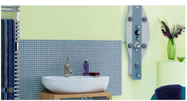 Salle de bains. Peinture couleur vert d’eau Dulux Valentine