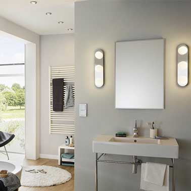 Il vaut donc mieux opter pour une lumière générale et indirecte combinée à des appliques intégrées, comme par exemple des LED intégrées au miroir.