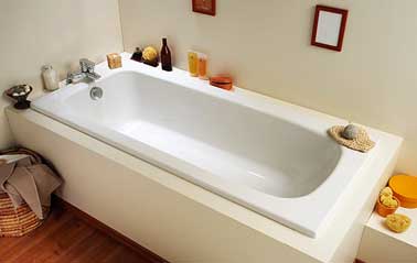 Baignoire gain de place en Toplax matériau résistant, antidérapant et facile à entretenir baignoire FLAVIS 150 x 70 cm prix 225 € Castorama