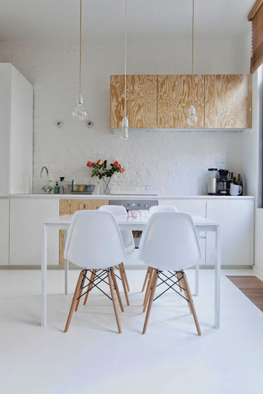 Alterner peinture blanche et façades en contreplaqué brut une idée tendance lorsque l'on doit repeindre les meubles de sa cusine