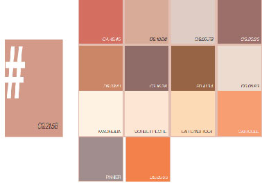 Un nuancier de 15 couleurs répondant à la tendance aux ambiances naturelles pour la déco de nos pièces cette année. Un panel de teintes terre et de orange doux s’associant facilement pour former une harmonie en camaïeux entre tons clairs ou moyens. Photo : Peinture Astral