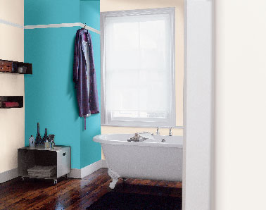 Enigmatique, sophistiquée et d’une infinie fraicheur, une ambiance couleur salle de bain orchestrée autour du bleu confirme son effet déco pour structurer l’espace. En total look sur les murs, ou introduit en isolé comme dans cette salle de bain, une peinture bleu souligne et valorise les teintes naturelles claires et foncées.