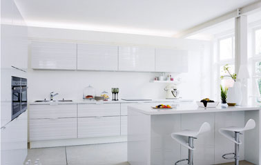 Cuisine en U avec plan de travail extra large facade blanc laqué