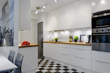 Rien de tel pour allonger et prolonger l’espace d’une cuisine étroite qu’une belle peinture blanche lumineuse.